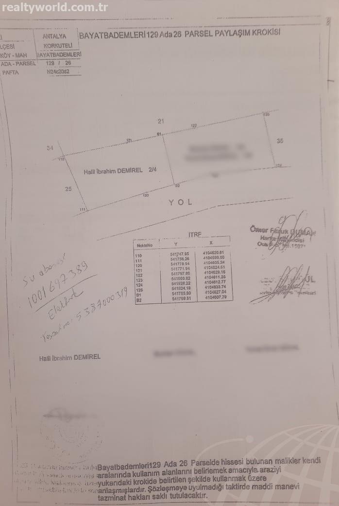 Bayat Bademleri köy yerleşik alanı içinde, 129/26 parselin 383 m2lik 1/4 hissesi satılıktır.